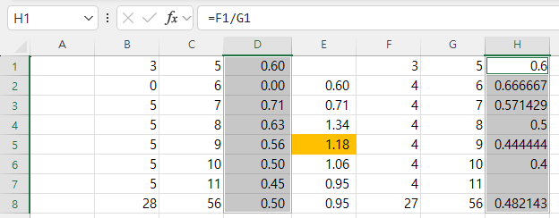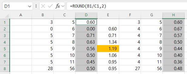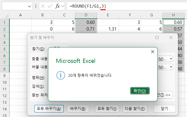 3행의 경우 원래 값은 0.714286인데, 반올림돼서 0.71로 표시됩니다.