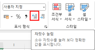 확인 버튼을 누르고 닫기 버튼을 누르고 보면. 여전히 소수점이하 자릿수가 2인데,