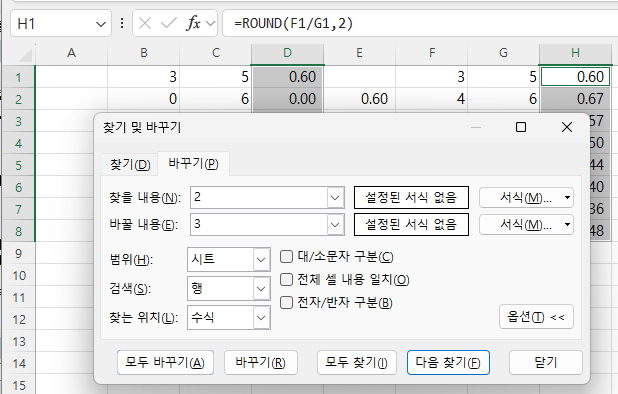 4행의 경우 원래 값은 0.625인데, 반올림돼서 0.63으로 표시되고,