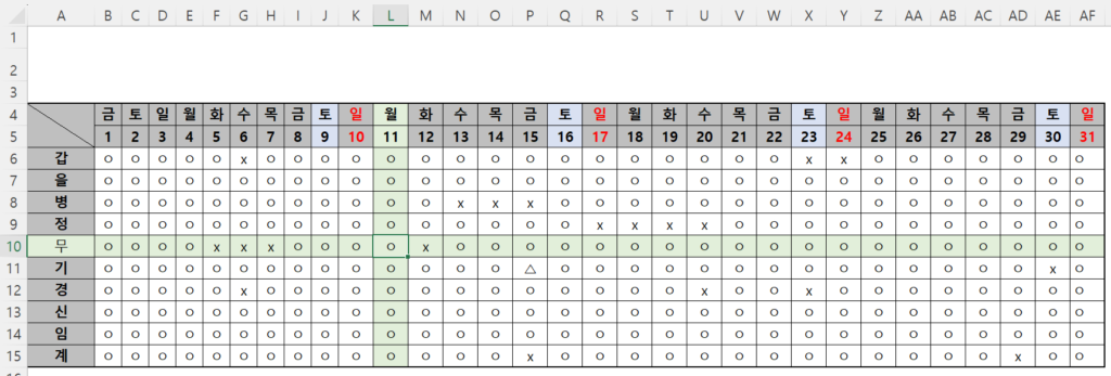 Set cfRule = rng.FormatConditions.Add(Type:=xlExpression, Formula1:="=ROW()=CELL(""row"")") ' 조건을 설정하는데 여기서는 $A1이 1인 경우를 확인하고 있습니다.