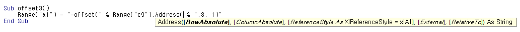 c9 대신에 Range("c9").address라고 Address 속성을 이용해서 C9 셀의 주소를 입력할 수 있으며,