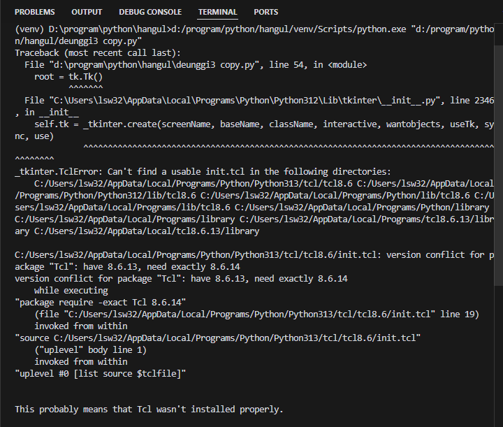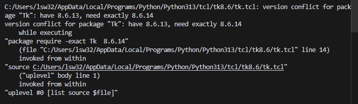 (file "C:/Users/lsw32/AppData/Local/Programs/Python/Python313/tcl/tcl8.6/init.tcl" line 19)라는 문구가 있습니다.